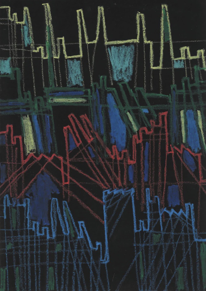 noch an Raumprogramm und sonstige pragmatische Sachen gedacht wird - und Werkzeug dieser seiner hochinteressanten „Meditationen“ sind eben die Handzeichnung, Skizze, autonome Wortuntersuchungen, die Spontaneität und Vitalität der „automatischen“ Aquarell-Kalligrafie, die meist die Liniengerüste der Skizzen überlagert und verflüssigt und leiblich-körperhaft ergänzt, überspannt … usw. usw.
