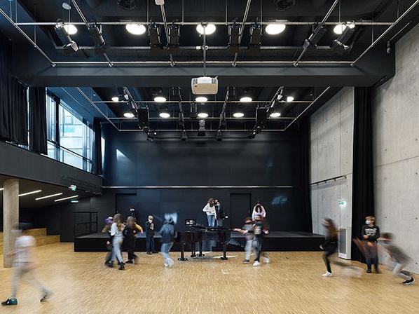 Drei neue Turnsäle, die Unterstufen in Clustern, Oberstufen in einem zeitgemäßen Departmentsystem organisiert, der Theaterschwerpunkt, eine adäquate Bibliothek, ein großzügiger neuer Speisesaal, das vielfältige Angebot an Pausenflächen, Pausenhöfen, einer Dachterrasse und vieles mehr runden das schulische Angebot ab und bringen Leben in den Schulalltag und in das Grätzel am Volkertmarkt.