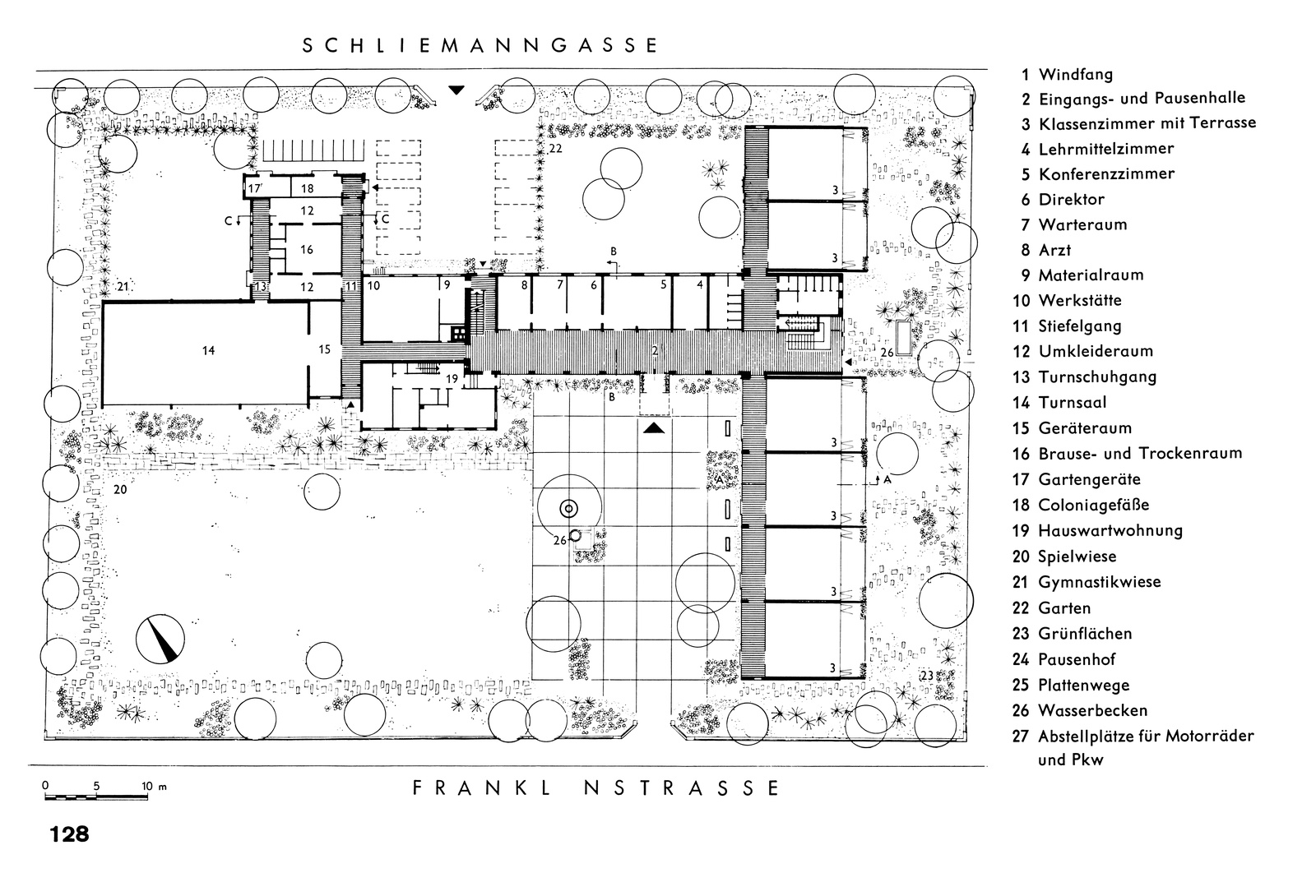 Typisch für Schulgebäude der Nachkriegsmoderne ist die Orientierung zum Freiraum, nach außen und zum Licht. Die Schulbauten sind als weitläufige, oft eingeschoßige und flächenintensive Anlagen konzipiert. Der Schulbau dieser Epoche orientiert sich an der internationalen Schulbaudiskussion, die von PädagogInnen, ÄrztInnen und ArchitektInnen geführt wird. Viele der architektonischen Konzepte wurden bereits in der klassischen Moderne erfunden, so zum Beispiel die Pavillonschule (Neues Frankfurt/Ernst May). Die Erfindung der Freiluftklassen geht auf die Heliotherapie der Jahrhundertwende zurück, die Sanatorien und Freiluftschulen dieser Zeit wurden von Ärzten entwickelt. Die Öffnung zum Freiraum und die Großzügigkeit, die auch in den drei besuchten Schulen klar erkennbar sind, werden in den späten 60er Jahren allmählich verschwinden. Die Schulbauten werden dann kompakter und normierter, die Hallenschule ist der Vorbote dieser Entwicklung. Die Halle ist gleichzeitig auch Raum gewordener Ausdruck für eine große Schulgemeinschaft und berührt das Thema der Demokratisierung und Chancengleichheit. In den späten 60er Jahren experimentiert man mit Flexibilität und Fertigteilbauweisen.