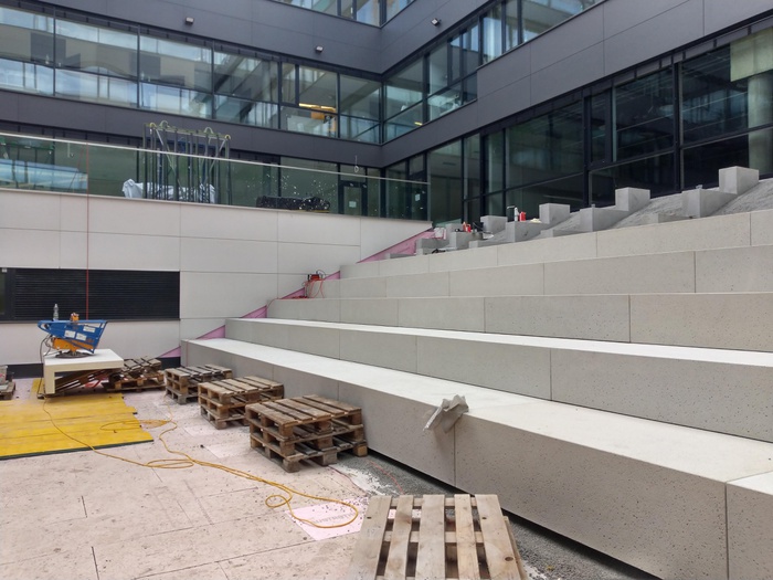 Drei neue Turnsäle, die Unterstufen in Clustern, Oberstufen in einem zeitgemäßen Departmentsystem organisiert, der Theaterschwerpunkt, eine adäquate Bibliothek, ein großzügiger neuer Speisesaal, das vielfältige Angebot an Pausenflächen, Pausenhöfen, einer Dachterrasse und vieles mehr runden das schulische Angebot ab und bringen Leben in den Schulalltag und in das Grätzel am Volkertmarkt.