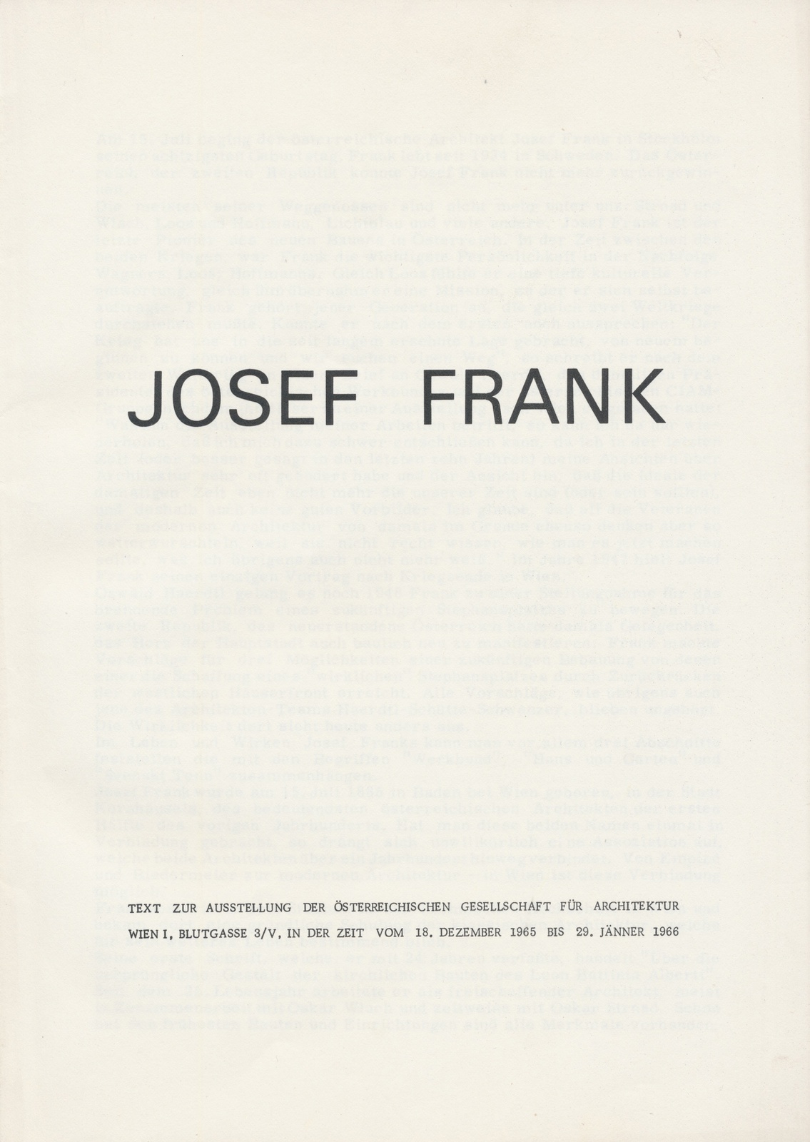 Ausstellung vom 18.12.1965 bis 29.01.1966 in der ÖGFA, Blutgasse 3/V, 1010 Wien